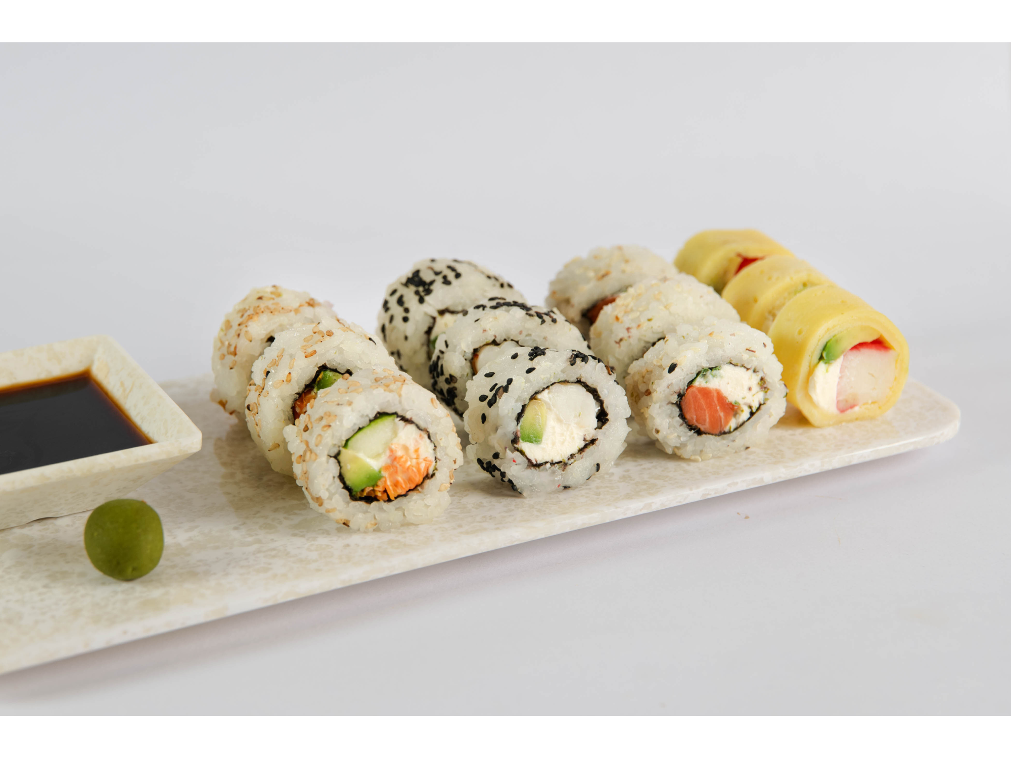 12 piezas Compartir por WhatsApp Copiar enlace Combinado de kanikama, salmon trout , langostinos y vegetales. Piezas Cali Feel, Philaboom, Shrimp y Vegetales. Incluye 1 salsa a elección y palitos. Imagen a modo ilustrativo.$15.000$11.999 20% OFF Precio sin impuestos: $9.917 Personalizá tu selección Las siguientes opciones aplican para cada producto agregado. Salsa a eleccion Seleccioná una opción. Obligatorio Salsa de sojaSalsa buenos airesSalsa teriyakiSalsa agridulce Complementos para tu pedido Agregá items adicionales a tu pedido. Cosito del sushi > accesorio para palitos Seleccioná una opción. Obligatorio Con cosito del sushi Sin stock Sin cosito del sushi Extras Seleccioná hasta 1 opción.Salsa buenos aires$600Salsa teriyaki$600Salsa agridulce$600Extra wasabi$300Salsa Spicy (picante)$500Salsa de soja$600 Entradas Seleccioná hasta 1 opción.Empanadas chinas de carne x2 Sin stock $4.500Empanadas chinas veggie x2$4.500Empanadas chinas veggies x3$6.500Gyosas de cerdo x6 Ravioles chinos fritos, rellenos de cerdo y repollo, acompañados con salsa agridulce. $5.500Langostinos rebozados X120 grs Langostinos rebozados con pan rallado saborizado + 1 salsa a elección. $7.999Nuggets de pollo Nuggets de pollo (5 unidades) + salsa a elección. $5.500Empanadas chinas de carne x3 Sin stock $6.500 Postres extra Seleccioná hasta 1 opción.Pistacho 300gr$8.899Frutilla a la crema 300gr Sin stock $8.899Limón 300gr Sin stock $8.899Chocolate Rocher Sin stock $8.899Galletas de la fortuna x2$600Dulce de leche granizado 300gr$8.899Chocotorta Sin stock $5.999Tiramisú Sin stock $5.999Cheesecake Sin stock $5.999Marquise$5.999Key lime pie 150gr Sin stock $5.999 Observaciones 0 / 150